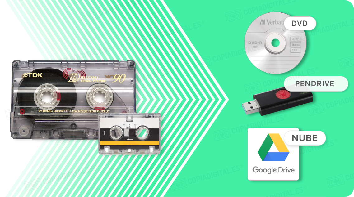 ¿Quieres pasar tus cintas de cassette a digital para no perder tus grabaciones de música o voz? En CopiaDigital ofrecemos un servicio profesional especializado de digitalización de cintas de cassette, para que recuperes tus recuerdos musicales y personales en formatos modernos como CD, USB o MP3.