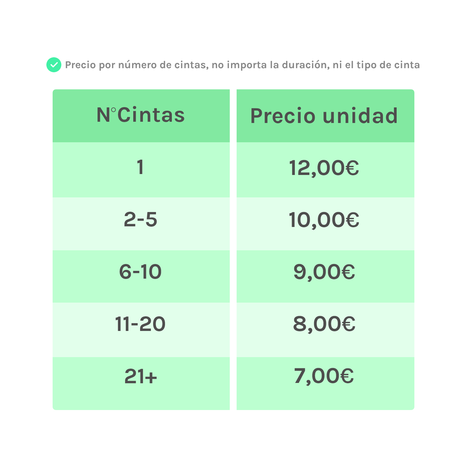 ✔ Reparación incluida (si lo requiere) de cada cinta.